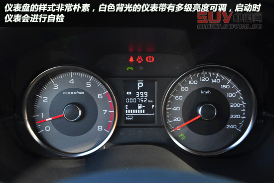 我們所試駕的2.5i尊貴版車型配備了氙氣大燈與帶狀的LED示寬燈,大燈具有清晰功能。上調的飛翼式大燈也是現在斯巴魯家族車型的特色,內部結構比較簡單,大燈不帶透鏡,據廠家透露將在以后的改款車型中增加這配置。