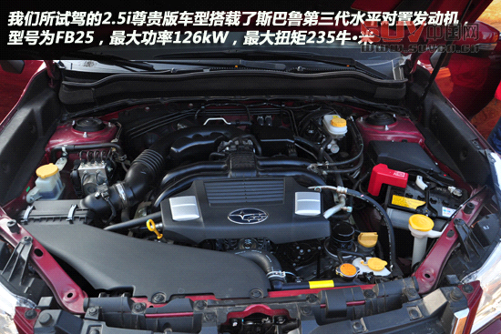 我們所試駕的2.5i尊貴版車型搭載了斯巴魯第三代水平對置發動機,型號為FB25,最大功率126kW,最大扭矩235牛·米。第三代水平對置發動機通過提升燃燒效率、減少運行摩擦力、加長沖程,提高了在中低轉速下的扭矩輸出,更適合于日常駕駛。