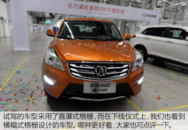 這是我們第一次看到威旺S50的實車,此前根據(jù)網(wǎng)上曝光的申報圖就知道它跟紳寶X65非常相似,只是中網(wǎng)格柵有所區(qū)別。有意思的是,北汽威旺S50根據(jù)版本配置的不同,共分兩種設(shè)計風(fēng)格不一樣的中網(wǎng)格柵。本次試駕的車型我們預(yù)測是高配,而它則采用了直瀑式格柵。