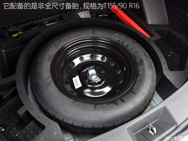我們的試駕車配備了韓泰輪胎,規(guī)格為225/60 R17,該輪胎側(cè)重靜音和舒適性,市場售價約為500元/條。輪圈的樣式相當動感,與威旺S50的氣質(zhì)還是十分搭配的。備胎方面,它配備了規(guī)格為T155/90 R16的非全尺寸輪胎,品牌則換成了佳通。