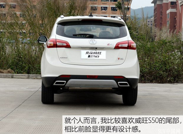 威旺S50的尾部很有看點,剎車燈采用了LED光源,燈帶很漂亮以及顯檔次。下方采用了視覺效果粗獷的包圍,并且?guī)в蟹啦磷o板,可以減少一些磕碰對車身的損害。另外,有意思的是,它在左右兩側(cè)還設(shè)置了兩個起裝飾作用的“鍍鉻排氣口”,從遠處看,很容易就讓人誤以為是排氣口。