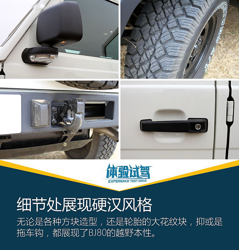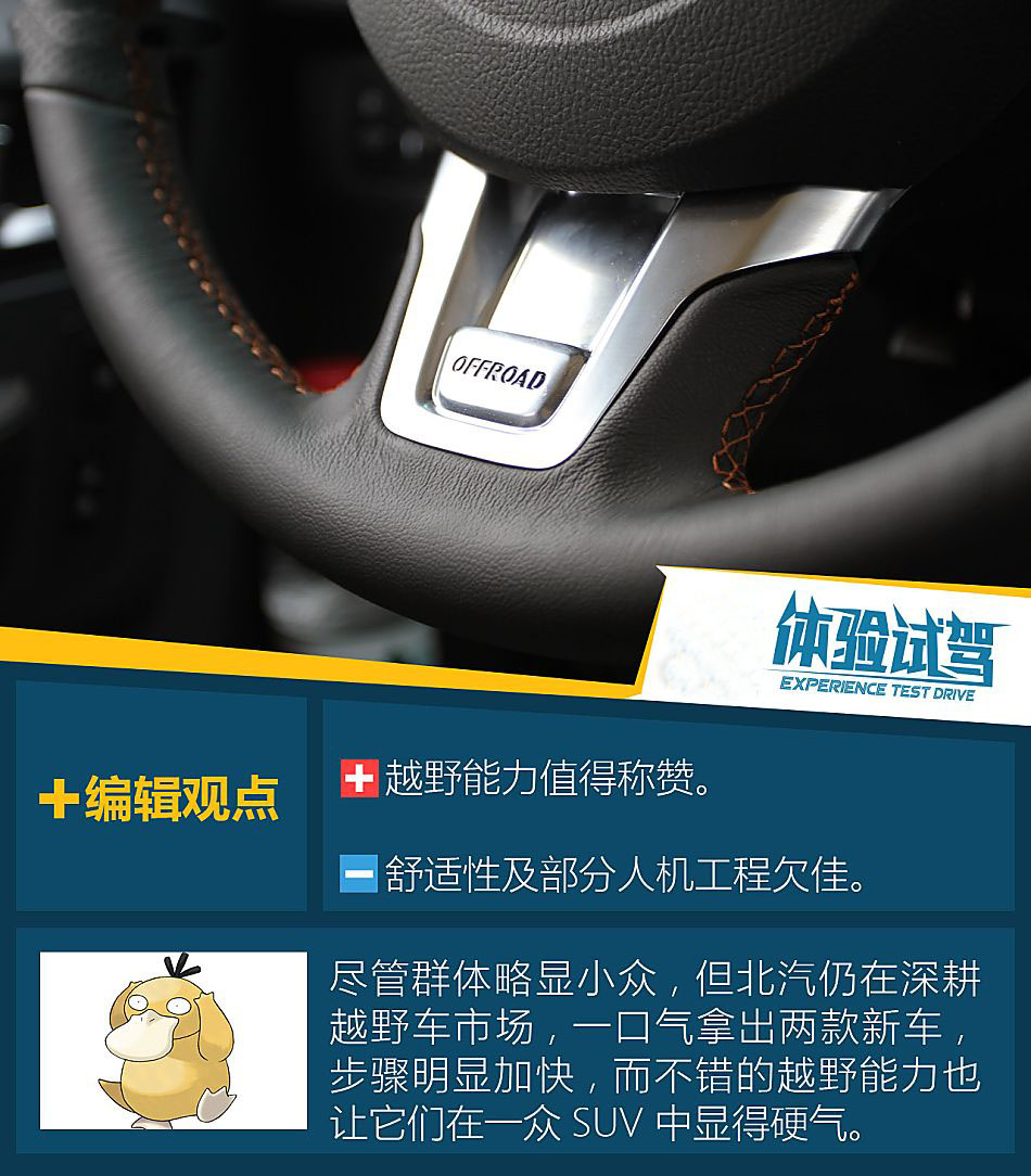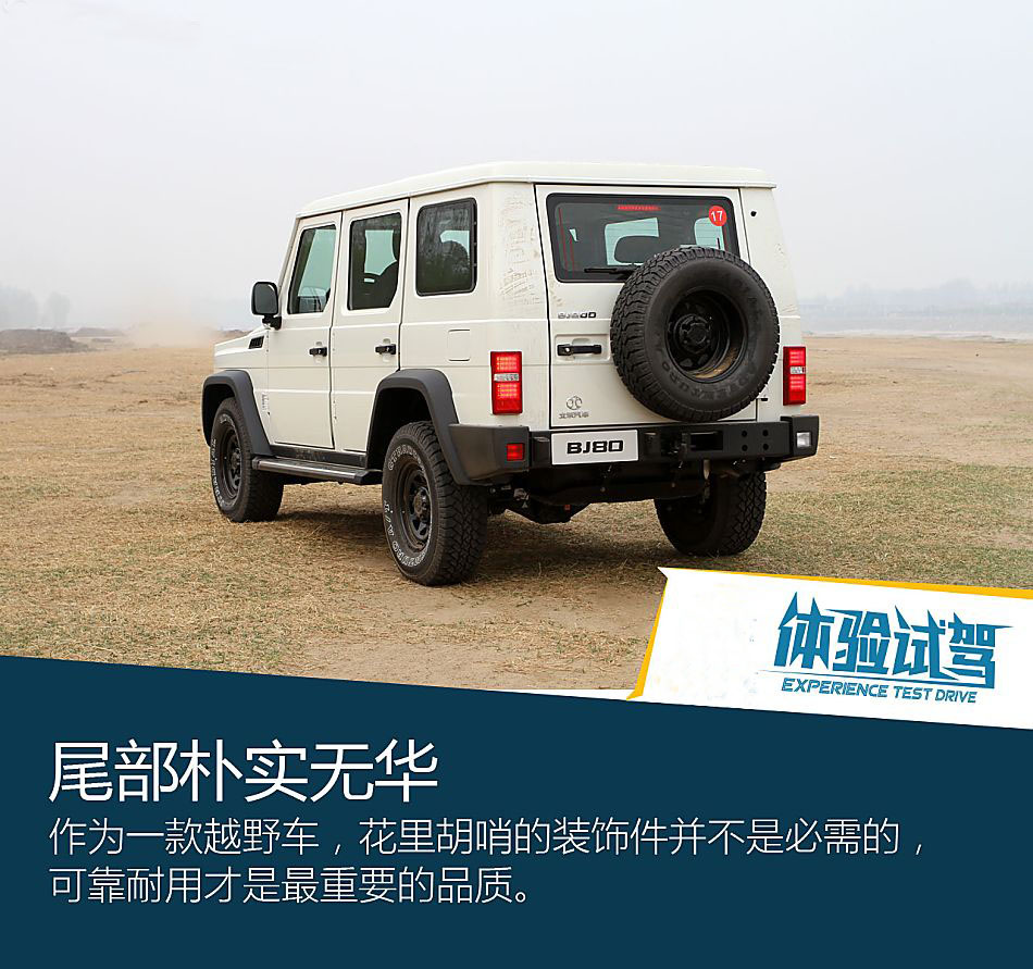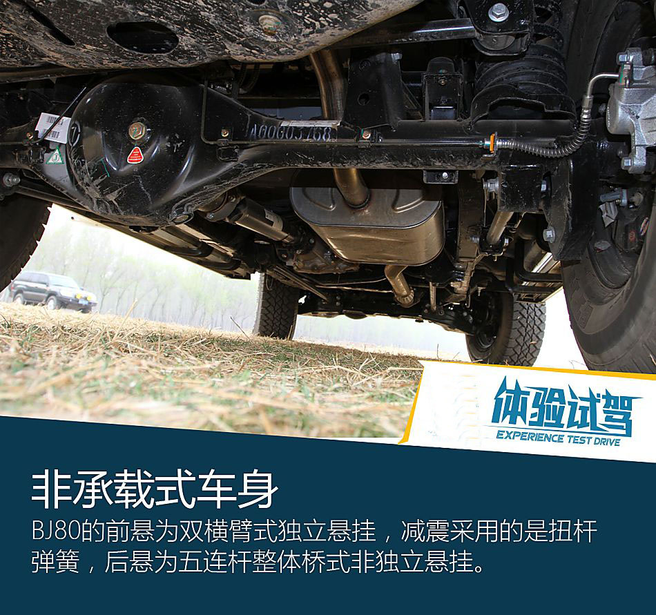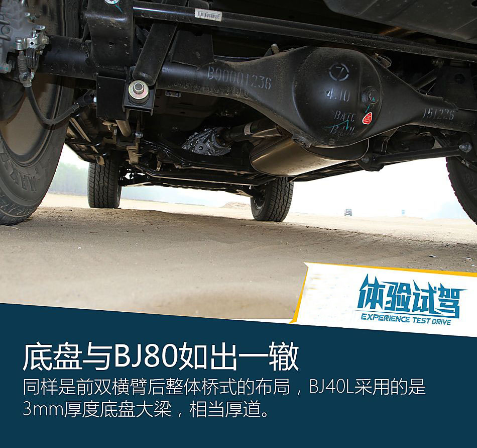 雙橫臂配扭桿彈簧的前懸估計要被越野老鳥數落一番,但成本面前必須有所取舍,BJ40L在可拆卸車身、防滾架、底盤方面的做工用料均屬上乘,你能看得出北汽在這臺車下的功夫以及誠意,與競品相比顯得有些“太會玩”了。