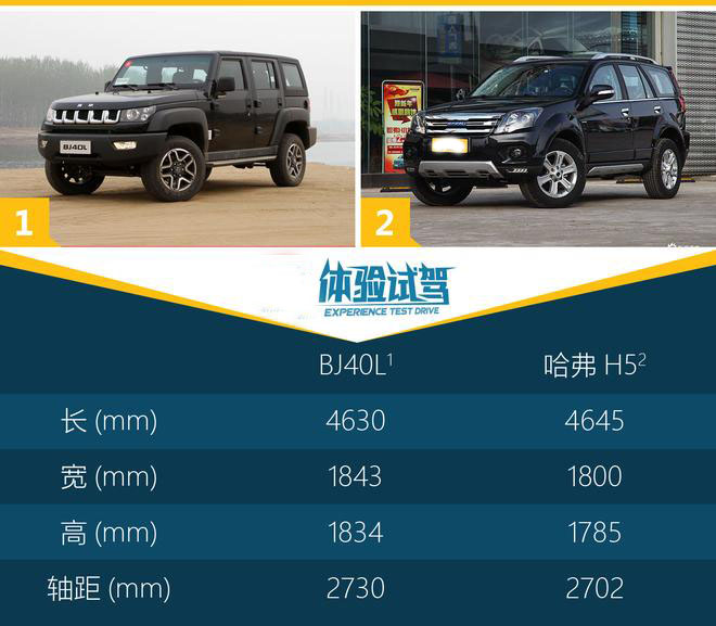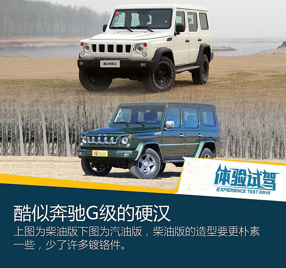 BJ80分汽油版和柴油版,汽油版的車型在長度會多出60mm,高度則減少1mm。主打B級中高端越野SUV,這個級別最直接的對手就是哈弗H9。