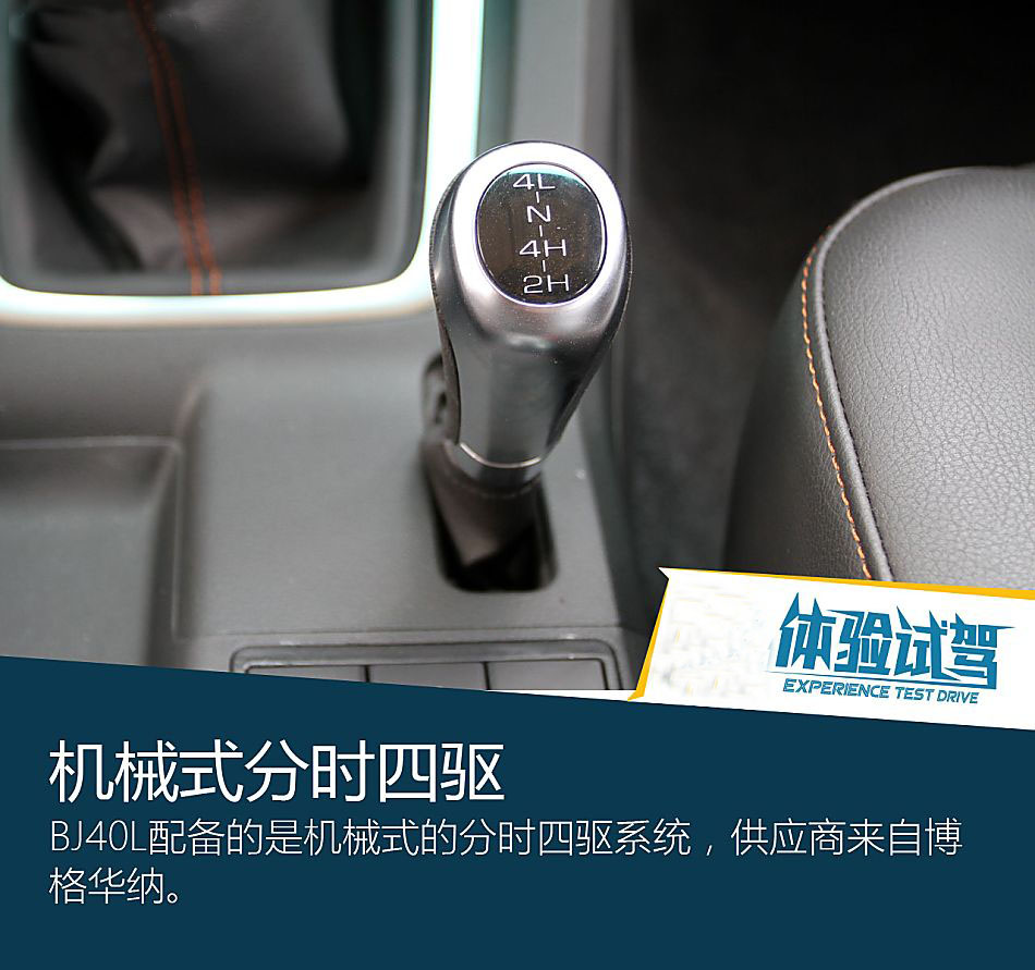 BJ40L使用的這套分時四驅系統,四驅模式下前后扭矩分配為恒定的50/50,還帶有低速四驅模式,沒有復雜的電子設備輔助體現簡單可靠。