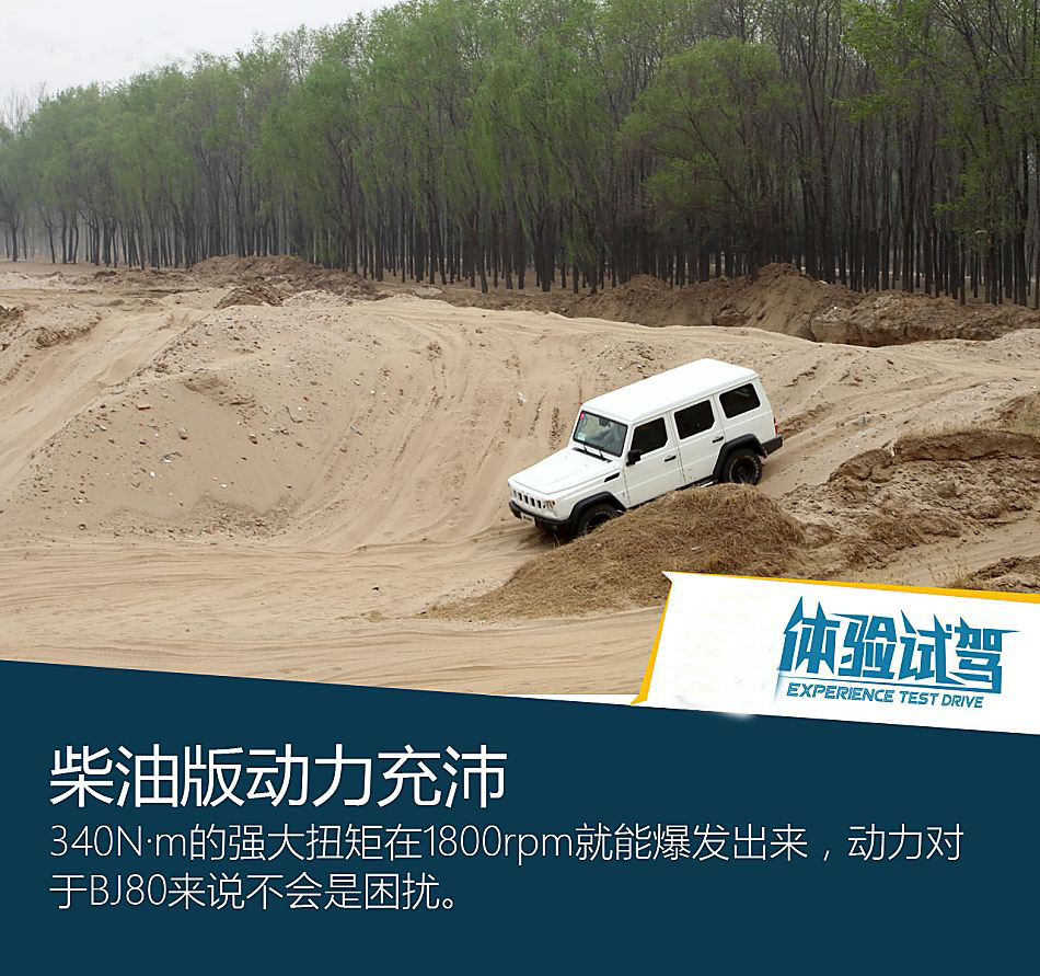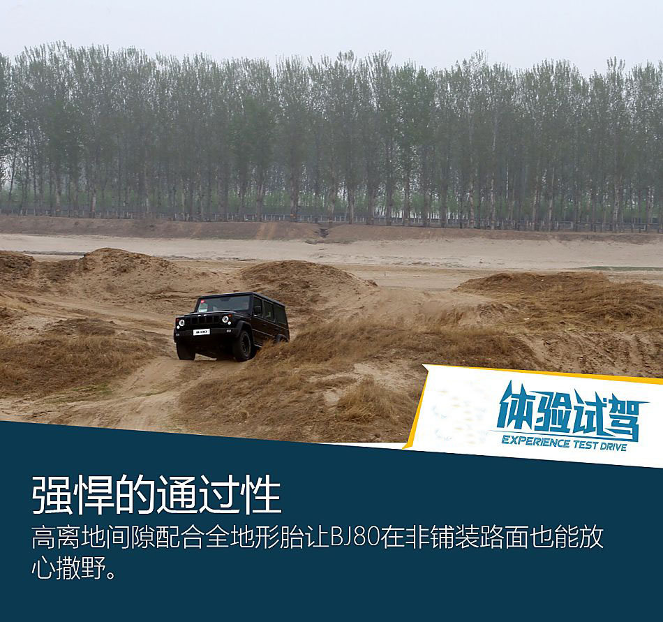 來到越野場地,細沙河道以及炮彈坑對于BJ80來說并沒有太多挑戰,法寶之一在于高離地間隙、高接近/離去角,第二就是全地形輪胎的作用,這保證了BJ80沒出現輪胎失去附著力而趴窩的情況。