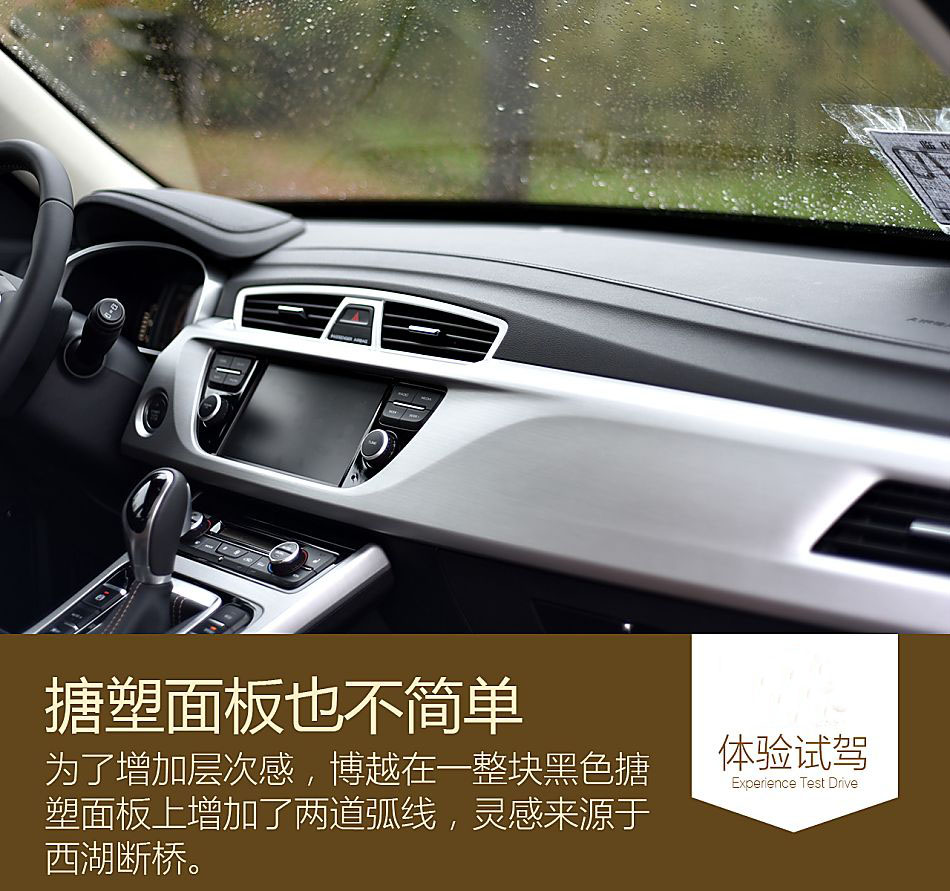 這里需要說明的是,對(duì)于面板這種整塊材料,加工時(shí)多一道弧線、多一個(gè)切面都會(huì)導(dǎo)致成本的提升。一般來講我們看到的靠近風(fēng)擋的內(nèi)飾面板都是最簡(jiǎn)單的平面或弧面,而設(shè)計(jì)師為了給博越的內(nèi)飾營造出更多的層次感,給這塊面板增加了兩條舒緩的弧線,確實(shí)讓整車的內(nèi)飾顯得不那么單調(diào)了。