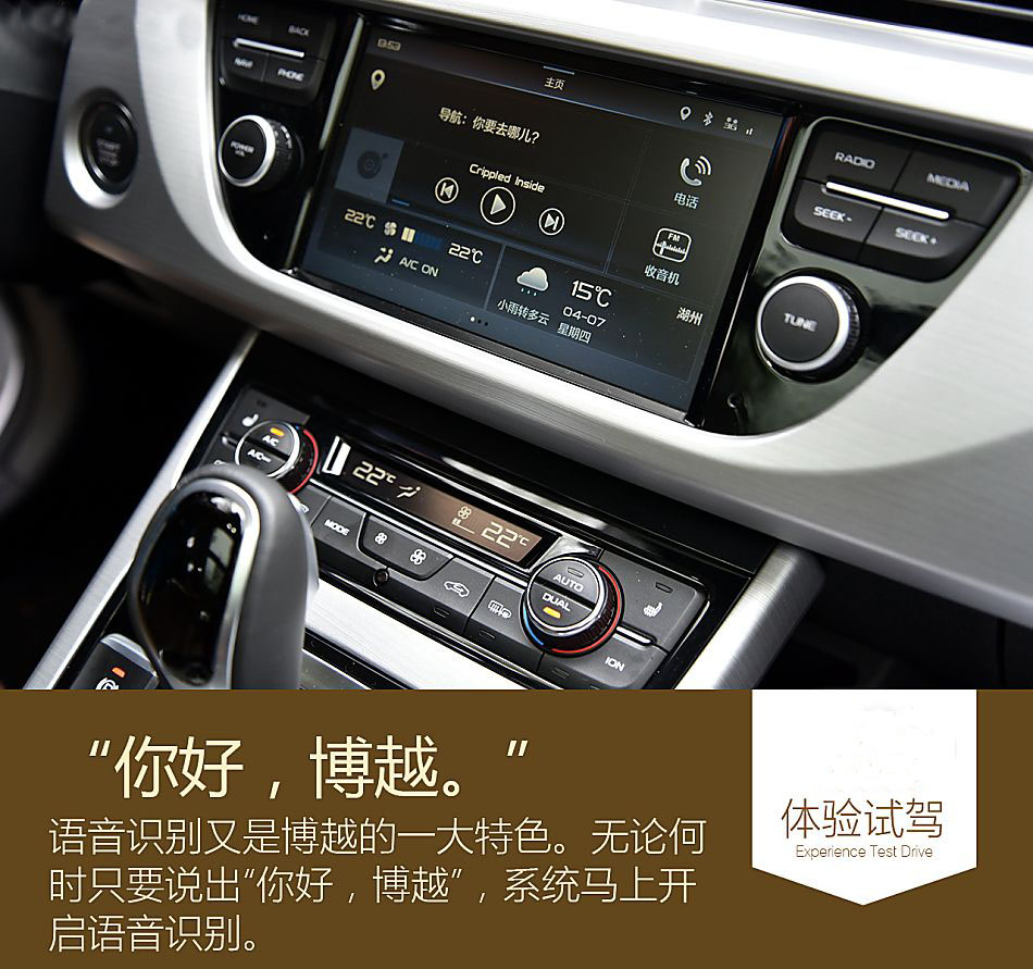 與科大訊飛合作,讓博越有了智能化程度較高的語音識(shí)別系統(tǒng)。無論何時(shí),車內(nèi)人員只要說出“你好,博越”四個(gè)字,系統(tǒng)馬上開啟語音識(shí)別。功能性上講,類似于“附近的加油站、我餓了、隨便聽一首歌”這種生活用語都能聽明白,而且博越采用雙麥克降噪,即便車內(nèi)放著音樂或有雜音,照樣可以識(shí)別,成功率非常高。而且,博越還支持3G網(wǎng)卡與車載WiFi,便于隨時(shí)收聽網(wǎng)絡(luò)歌曲。