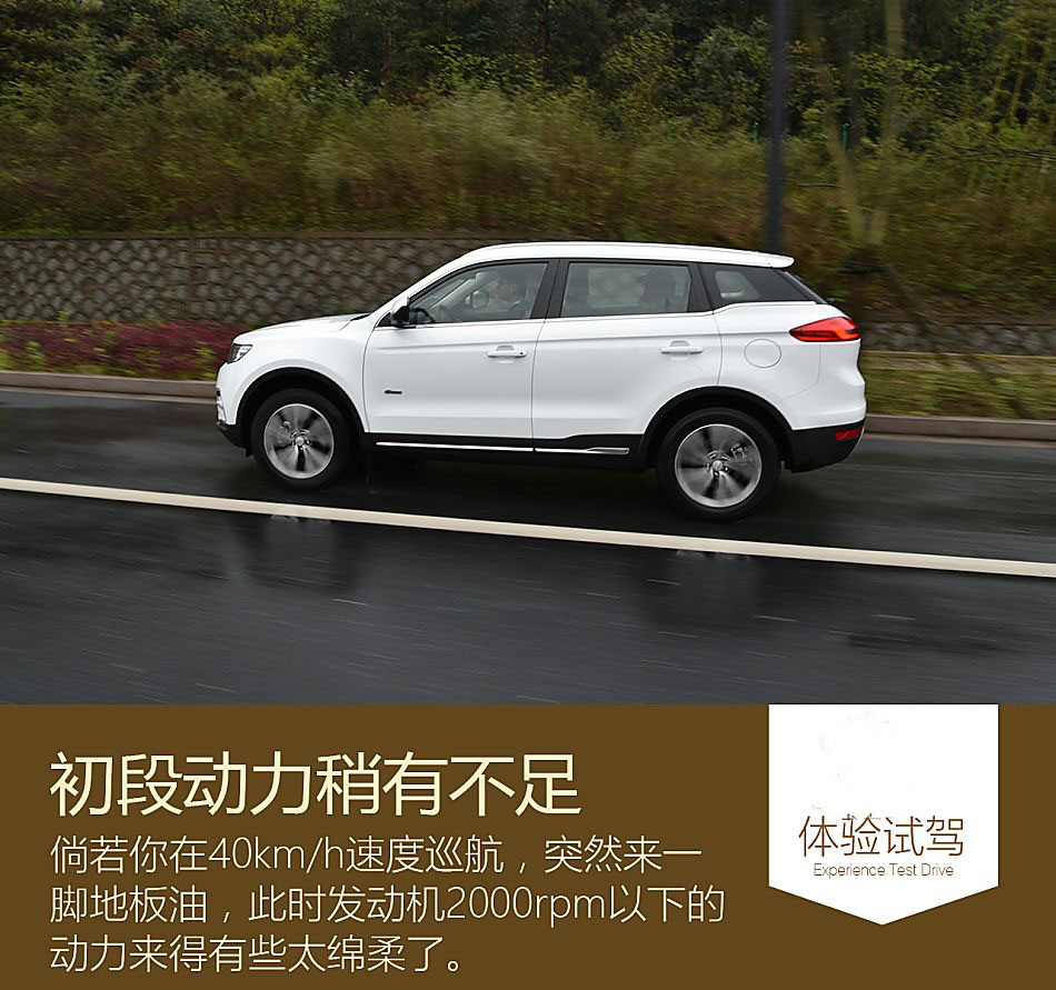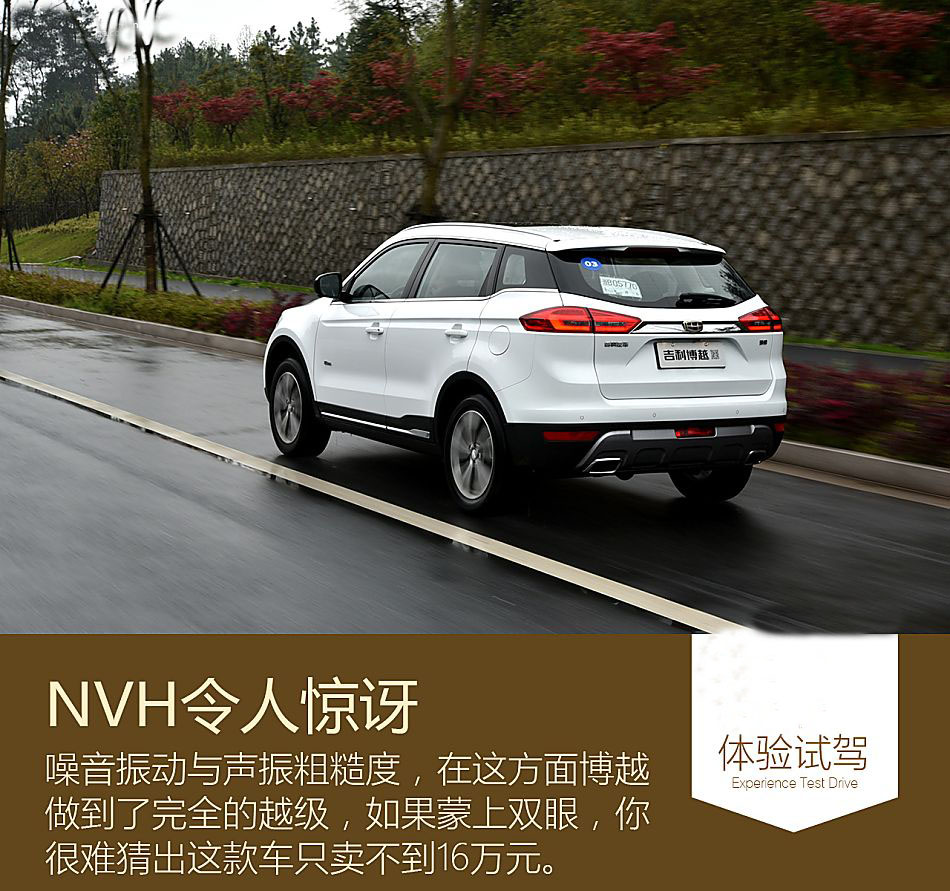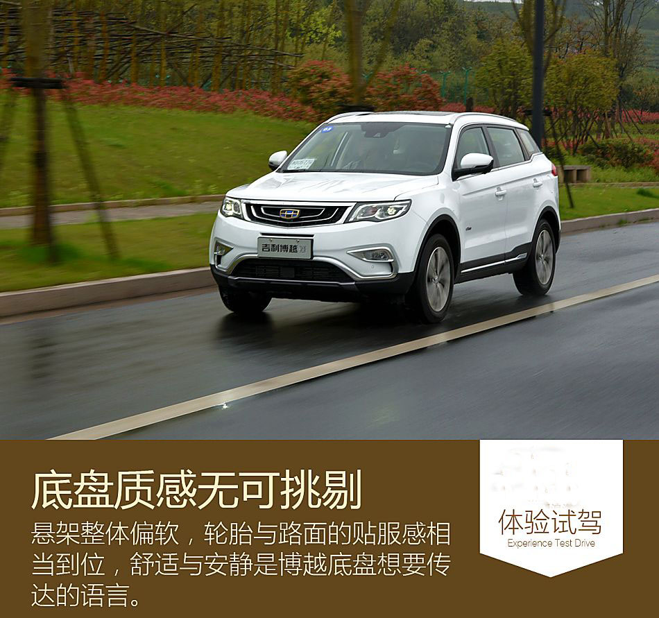 首先要說的就是底盤,我個(gè)人覺得這是9-15萬元區(qū)間內(nèi)無可爭(zhēng)議的最佳底盤。博越的底盤調(diào)教是偏向舒適的,因此它選擇了較軟的懸架,對(duì)于路面的細(xì)碎震動(dòng),這套懸架與車輪配合,把它們過濾得非常得體,只是將最必要的信息傳達(dá)到車內(nèi),讓駕駛者知道正在駛過的是什么樣的路面。高速過一些起伏路面時(shí),車輛并沒有因?yàn)閼壹苷{(diào)校偏軟而產(chǎn)生明顯的拋跳,而且底盤自始至終都沒有特別明顯的噪音,對(duì)于路面雜音的隔絕做得非常到位,這就是吉利的底盤團(tuán)隊(duì)的功勞了,要知道這些都需經(jīng)過及其繁雜的反復(fù)微調(diào),才能有這樣的成績(jī)。