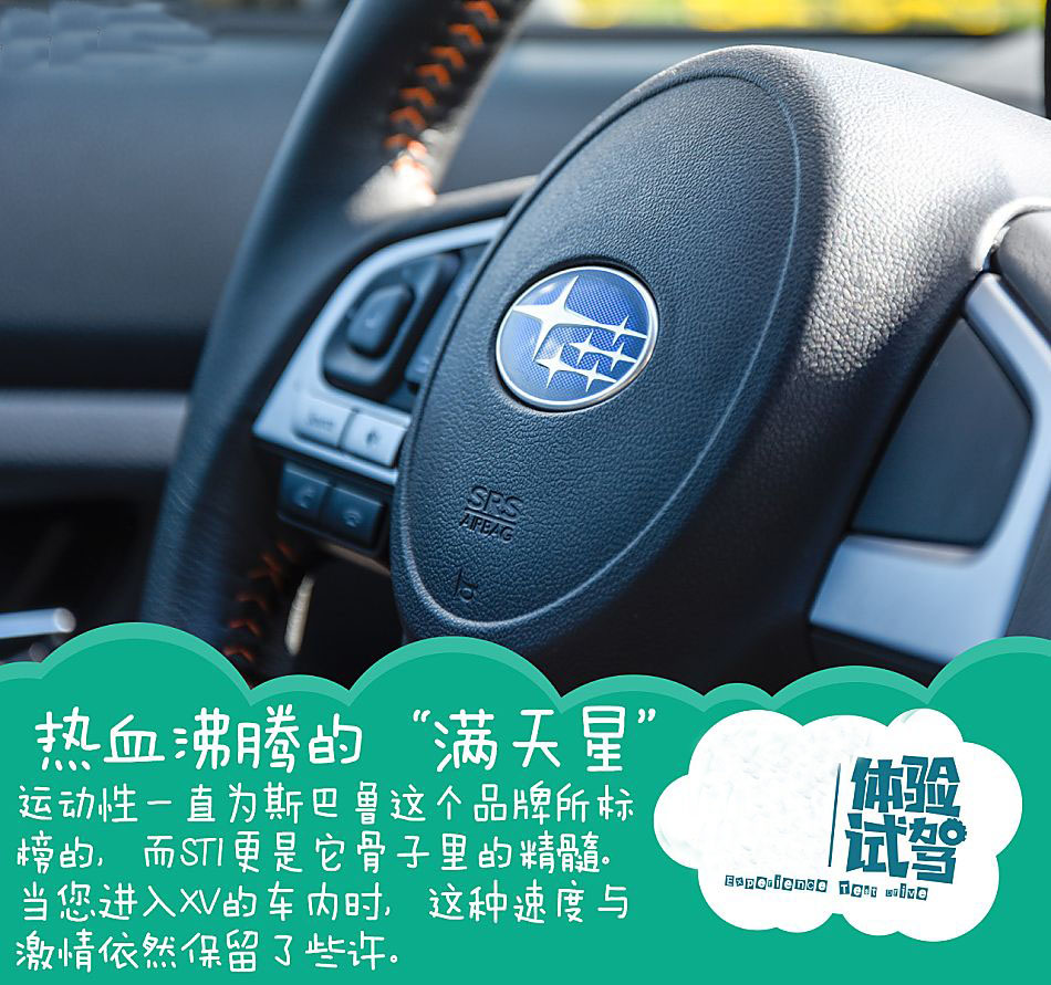 在操控感受方面,新款XV在高速過彎時(shí),它并不會讓人感受到它是一輛SUV,更像是近似于轎 車的操控感受,你感受不到太高重心所帶來的負(fù)面影響,我相信這是由于水平對置發(fā)動機(jī)低重心的特 點(diǎn)。而關(guān)于它操控的指向性來說更是可圈可點(diǎn)的,新款XV的轉(zhuǎn)向響應(yīng)非常迅猛,且車身也會立馬回饋 給你的動態(tài)感受,這種駕駛的順從感我想在同級別車型來說只有斯巴魯XV可以做到這點(diǎn)。
