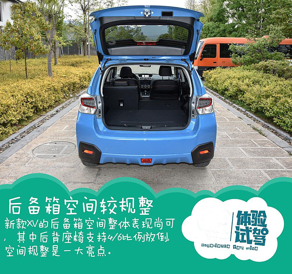 儲物空間方面,XV的儲物格不多,但算是夠用。不過后排的儲物空間就顯得較為不足了,另外 后備廂的門檻離地高度略高(達(dá)到790mm),使用上較為不便。