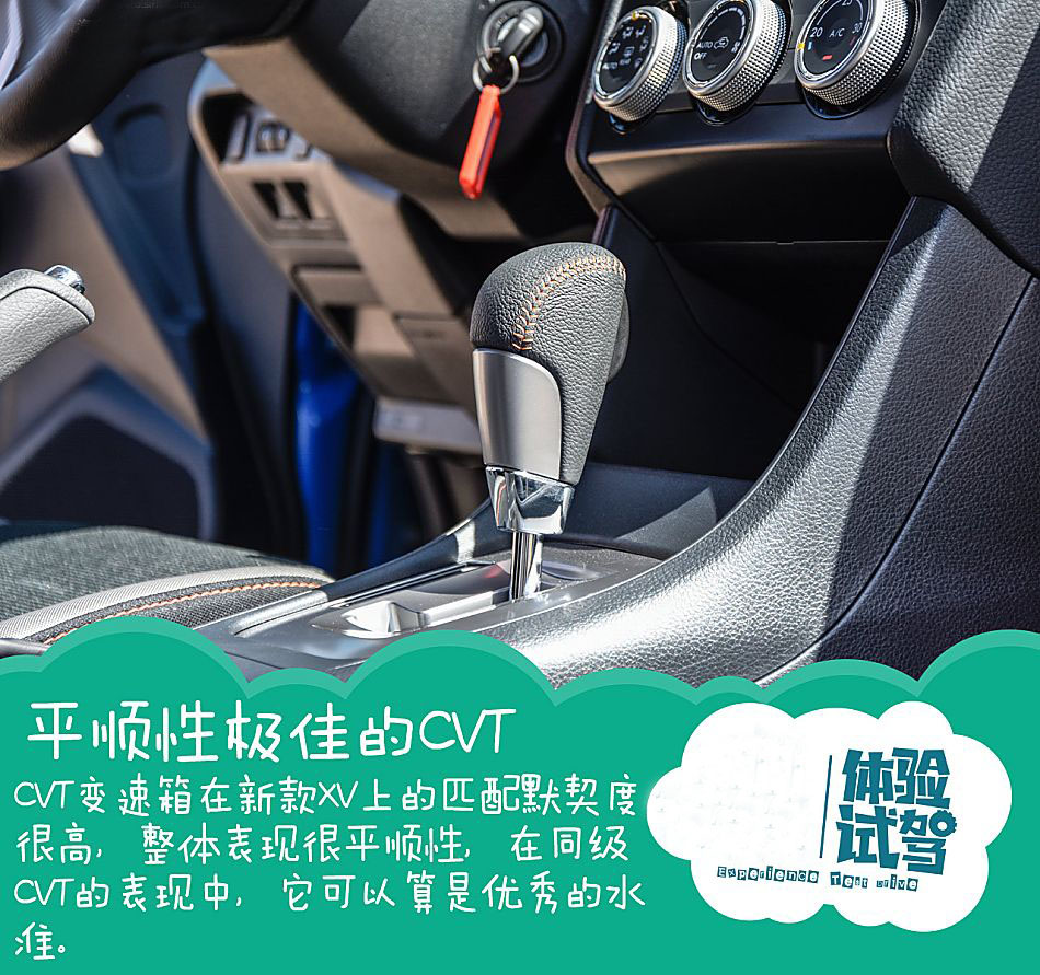 新款XV所搭載的CVT變速箱的表現(xiàn)在同級別日系車中可以排到上乘的水準(zhǔn),整體反應(yīng)還算迅速 ,不會像某些配置CVT變速箱卻與發(fā)動機(jī)匹配度不佳的車輛,在提速的過程中讓人有種說不出的“無聊 感”。而它最大的特點(diǎn)還是在于CVT天生的平順性,這可以更好地照顧以舒適為訴求大部分家庭的需要 。而如果您仍然想要速度與激情的話,只需要油門開度大一些,此時(shí)變速箱會改變齒比,提高轉(zhuǎn)速, 帶來更為迅猛的加速體驗(yàn)。