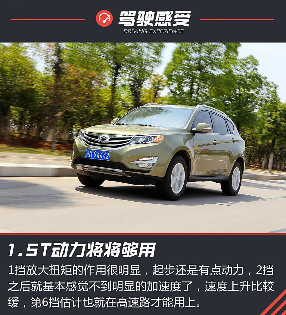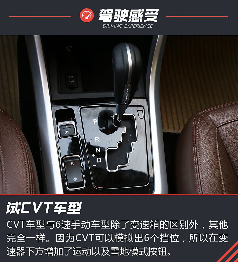 本次試駕車型分別為1.5T手動創(chuàng)領(lǐng)版和CVT創(chuàng)領(lǐng)版,其動力系統(tǒng)為1.5T發(fā)動與6速手動變速器或CVT(模擬6速)變速器的組合。此外還有搭載2.0T發(fā)動機的車型,其最大輸出功率140kW、最大扭矩250N·m,與之匹配的是6速手動和8速手自一體變速器。本篇動態(tài)體驗將主要以1.5T配手動變速器的車型為主。