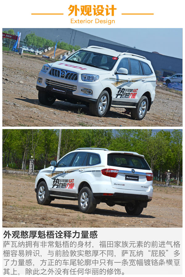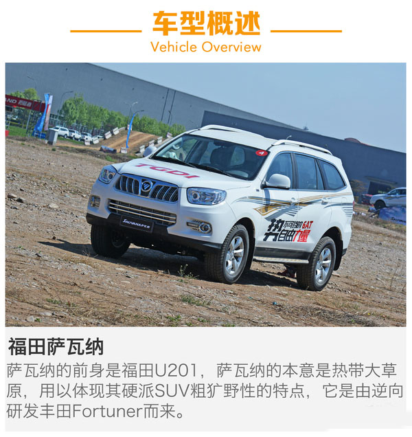 薩瓦納的前身是福田U201,薩瓦納的本意是熱帶大草原,用以體現其硬派SUV粗獷野性的特點,從外形來看,它和豐田Fortuner非常神似,事實也的確如此,薩瓦納正是脫胎于這款豐田而來。
