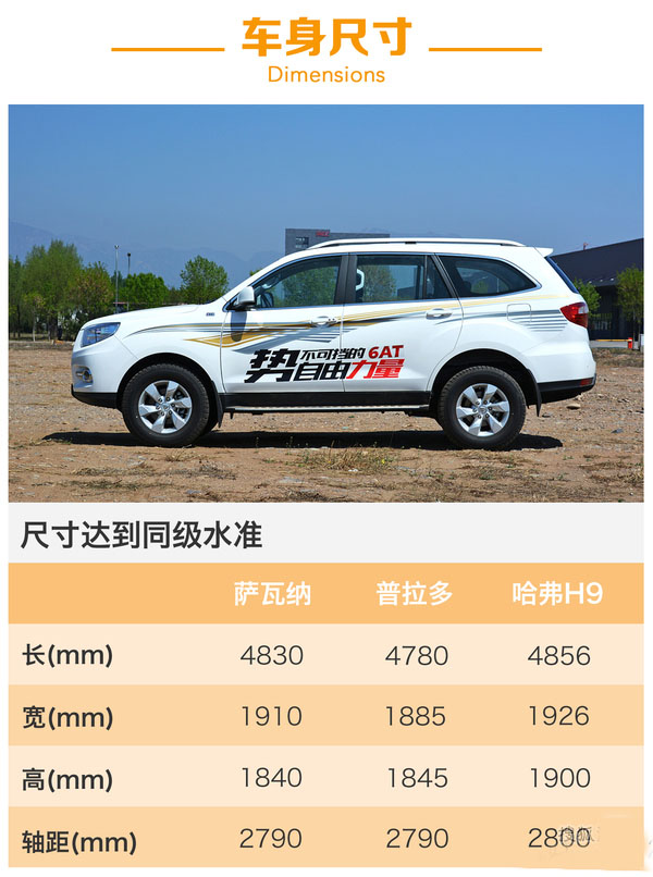 薩瓦納車身尺寸長寬高分別為4830*1910*1840mm,軸距達到2790mm,尺寸躋身中大型SUV行列,甚至比普拉多還魁梧,和哈弗H9同屬一個級別。作為硬派SUV的一員,優異的接近角和離去角當然是一項硬性指標,36°的接近角和24°的離去角以及220mm的離地間隙正等待我們去檢驗。