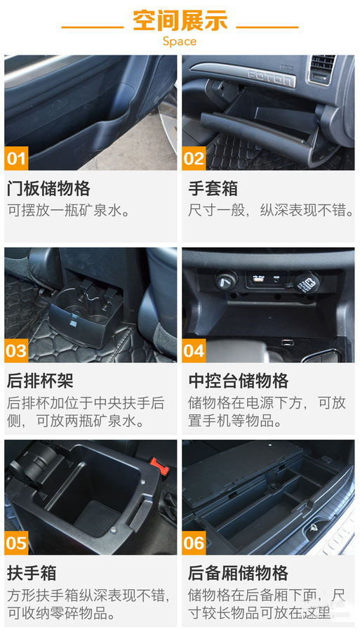 儲物空間方面,常規的儲物格一個不少,實用性也很不錯,尤其值得一提的是后備廂,常規尺寸分別為1180/1120/920mm,如有特別需要,可以把第二排座椅向前豎起,并放倒第三排,最大容積廠家沒有公布,但肯定非常可觀。