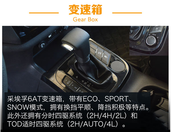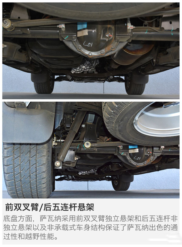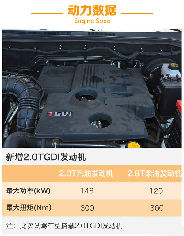 這款E-POW 2.0TGDI渦輪增壓發動機由德國斯圖加特研發中心研發,具備GDI缸內直噴、液壓挺柱、滾子搖臂、雙平衡軸等多項技術。這臺發動機最大功率148千瓦,峰值扭矩300牛?米,在1500-4500轉之間即可輸出最大扭矩。與發動機匹配的是德國采埃孚6速手自一體變速箱,并帶有ECO、SPORT、SNOW三種模式,這款變速箱擁有換擋平順、將擋積極等特點。此外薩瓦納還擁有分時四驅系統(2H/4H/2L)和TOD適時四驅系統(2H/AUTO/4L)。底盤方面,前雙叉臂獨立懸架后五連桿非獨立懸架以及非承載式車身結構保證了薩瓦納出色的通過性和越野性能。