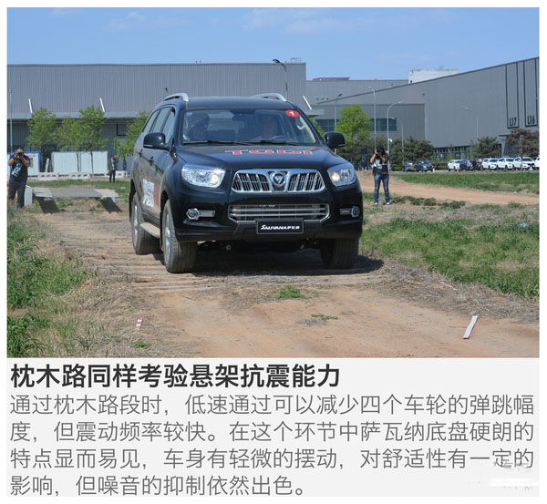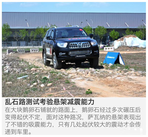 本次活動沒有鋪裝路面環節,稍顯遺憾。但場地測試環節頗為全面,側坡、亂石路、枕木、駝峰、單邊橋等項目一一考驗著薩瓦納。