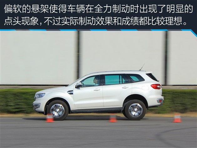 撼路者在制動測試中的表現較為穩定,連續多組制動成績均為在40-41米,其中最好成績為40.08米。從車輛在制動測試中的實際表現來看,撼路者的初段制動力度稍有波動,整個制動過程中都能保持-1g左右減速G值,制動踏板的彈腳力度較為柔和,而40米出頭的成績雖然和旗艦版車型有1米多的差距,但考慮到其整備質量超過2.3噸,這一制動距離也算得上是一個不錯的成績。