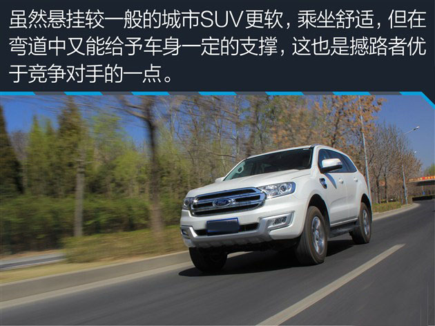 極其敏感的油門初段設定讓人上手之后覺得駕馭這個大塊頭是一件非常輕松的事情,只需輕點油門,發動機轉速迅速升至2000rpm以上,在擁堵的城市里跟車絲毫沒有拖沓的感覺。由于車高已經超過1.8米,高高在上的坐姿讓駕駛員有著更好的視野,相比于那些同樣采用承載式車身的硬派SUV而言,撼路者開起來并不會忽忽悠悠的,高速并線什么的也不會讓人覺得心里沒底。