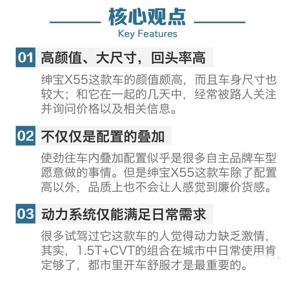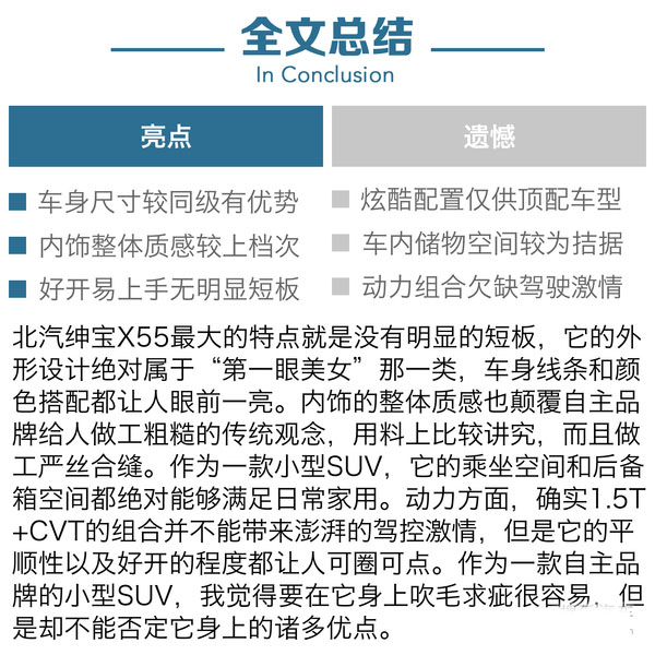 【SUV中國網】在過去幾年中,每每測試自主品牌的車型時,都習慣性的帶有一種包容的心態來看待。這么多年過去,有的自主品牌車型依然在“打臉”,有的品牌卻是能夠看到它一步一步的在成長和進步。時至今日,一些自主品牌車型的品質其實早已更上一層樓。就比如本次測試的這款北汽紳寶X55這款車,就是一款能讓人為之點贊的車型。