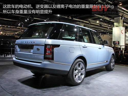 路虎在推出電動版衛士之后,2013年法蘭克福車展上,路虎正式發布了攬勝的混動車型,該車在純電模式下可以續航里程32km,混動模式下百公里油耗僅為6.4L,成為史上最省油的路虎車型。