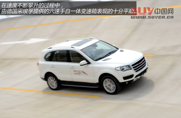 哈弗H8的試乘路段被選擇在了長城徐水工廠內的高環測試場中進行,在超過7公里的賽道中,身處副駕的我得以對哈弗H8的變速箱平順性以及噪音等方面有了一個初步的認識。