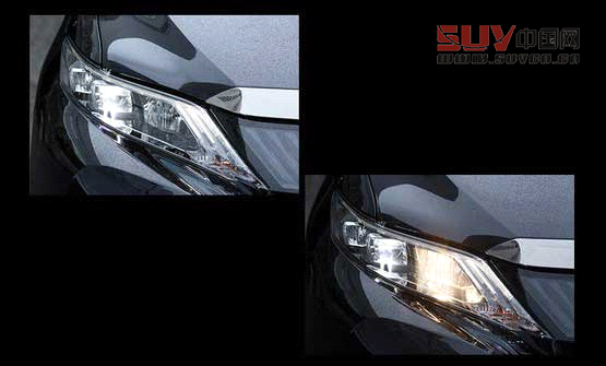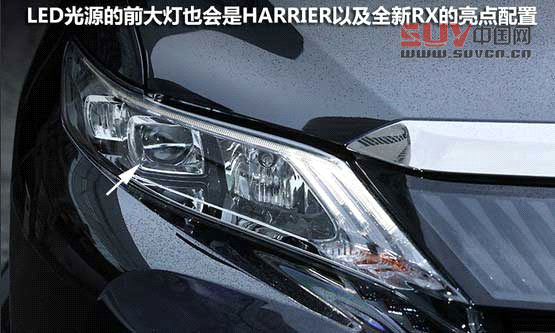 LED光源的前大燈也會是HARRIER以及全新RX的亮點配置,不過豐田在燈光方面保守了一些,只給近光燈配備了LED,而轉向以及示寬燈的光源依然是鹵素,不過我們也相信掛上“LEXUS”商標后,燈光的配置會有所提升。