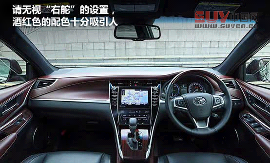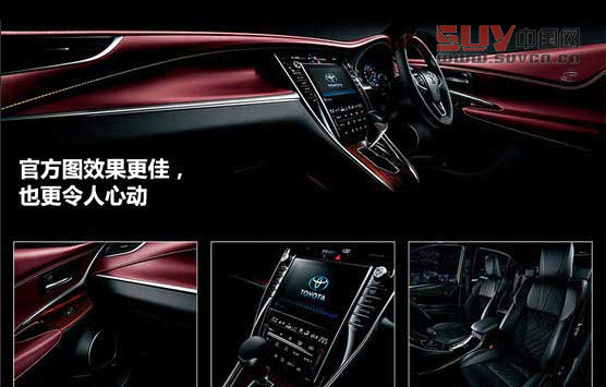 HARRIER車內采用了與現款RX完全不同的設計,酒紅色的配色十分吸引人,加上極為流線動感的前控制臺設計,營造出相當高檔的內飾氛圍,這種內部放在雷克薩斯上也是十分妥當。