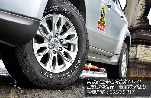 車身側面造型亮點不多,線條還算比較和諧吧,亮銀的行李架比較好看,但實際用途不大。車窗所占的側面比重較小,稍有點顯得失重。四個車輪顯得很粗獷,輪胎品牌是瑪吉斯,成本并不是很高,這組輪胎胎面有四道寬溝設計,注重排水性能,但輪胎的特點決定了高速行駛時舒適性較差。
