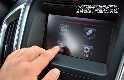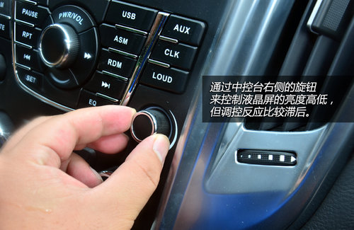 在這款車的內飾配置方面,也是很有亮點的。液晶屏支持觸摸控制,并且反應速度很快,液晶屏的畫面質感也很好,在同價位的SUV中,屬于較高水平。但控制液晶屏亮度調節的旋鈕反應較慢,旋轉之后,需要停滯一小會才會變換屏幕亮度。