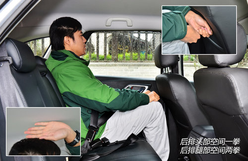 乘坐空間方面,前排的坐姿比較高,并且副駕駛席無法調節座椅的高低,使乘客感覺不是很舒適。頭部空間比較理想,后排的座椅靠背支持角度調節,能夠給長途駕駛帶來更多的舒適性體驗。縱向腿部空間也比較理想,但在這款頂配車型上,沒有天窗,實在是有些說不過去。