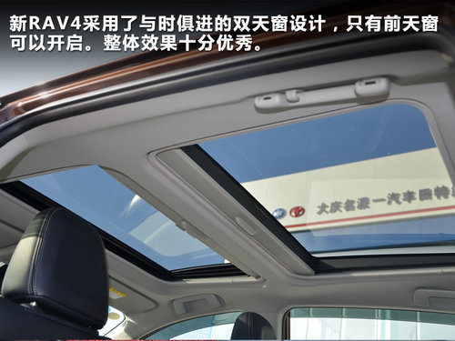 新RAV4后排采用平直設(shè)計(jì),沒有中間凸起,方便了后排中間乘客,提高了舒適性。雙天窗設(shè)計(jì),很好得迎合了國(guó)人對(duì)全景天窗喜愛的需求。前天窗可以開啟,整體效果十分優(yōu)秀。