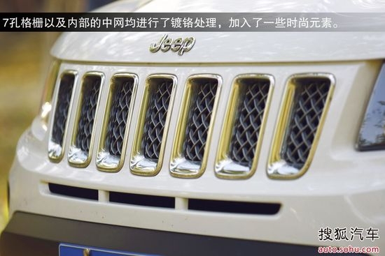 2014款指南者仍然擁有與大切諾基十分相似的前臉,7孔進(jìn)氣格柵進(jìn)行了鍍鉻處理,看上去更加兇悍一些。大燈與尾燈進(jìn)行了熏黑處理,加強(qiáng)了一些運(yùn)動(dòng)感覺(jué)。在尾門(mén)上增加的鍍鉻條,起到了一些裝飾作用。