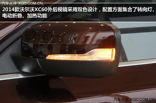 2014款沃爾沃XC60外后視鏡采用雙色設(shè)計,配置方面集合了轉(zhuǎn)向燈、電動折疊、加熱功能。