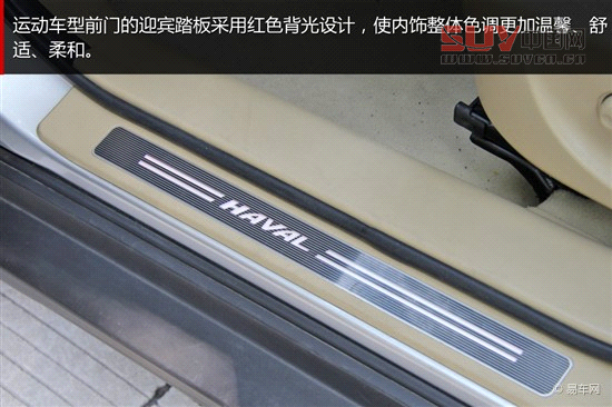 哈弗H6運動版車型整體配置與現款車型基本一致,不過該車更加注重細節方面的表現,比如:氛圍燈以及迎賓踏板的加入都營造出溫馨的氣氛,仿木紋結構的加入提升了整車的品質。