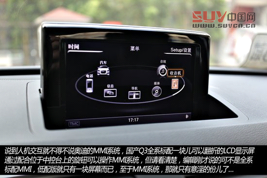 打開車門,國產(chǎn)奧迪Q3的內(nèi)飾依然保持了典型的奧迪風(fēng)格,不論是方向盤、中控臺(tái)還是儀表盤倒出都能“聞”到奧迪精致做工的味道。并且與進(jìn)口奧迪Q3相比,內(nèi)飾只是輕微的進(jìn)行了本土化修改,總體上與海外版本的Q3基本保持了一致,除此之外,Q3提供包括鋁制面板的五種不同裝飾件,和黑色、栗棕色、馬德拉斯棕色、鈦灰色、開心果米色五種不同的內(nèi)飾色調(diào)。