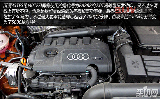 說完了外觀和內(nèi)飾,根據(jù)我們的慣例,接下來就要說說動(dòng)力系統(tǒng)了。國產(chǎn)奧迪Q3共有兩種動(dòng)力配置,但都使用的是代號(hào)為EA888的2.0L渦輪增壓發(fā)動(dòng)機(jī),35TFSI和40TFSI只是在調(diào)教上有所不同,也就是我們常說的低功率板和高功率板。