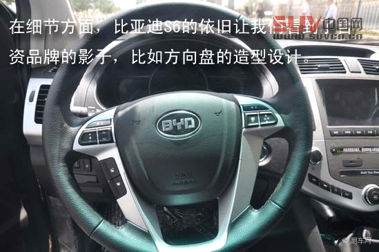 在內飾方面,比亞迪S6采用了時下流行的風格,照顧了多數人的審美。中控臺采用淺灰點綴,各種按鈕中規中矩的排列,雖然整體風格并沒有什么亮點,不過確有著不錯的親和力。在細節方面,比亞迪S6的依舊讓我們看到了合資品牌的影子,比如方向盤的造型設計。