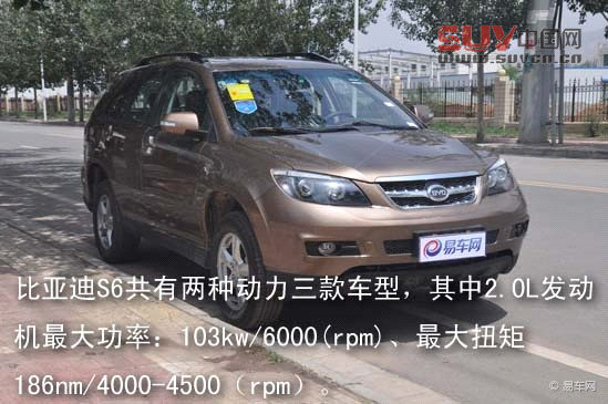 亞迪S6是比亞迪汽車的首款SUV車型,新車定位于中端SUV。先期將會推出搭載2.0L/2.4L兩款發動機的三款車型,其中2.0L車型均為手動擋、2.4L車型采用4速自動變速器。在整車造型方面,比亞迪S6依舊延續了傳統的借鑒路線。