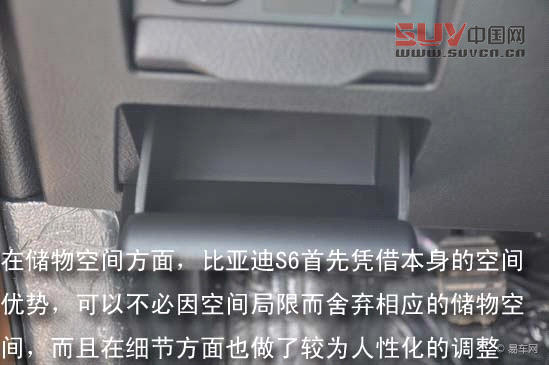 空間方面,比亞迪S6前后排乘客空間都有著不錯的表現,而且駕駛員座椅由于較高的坐姿,前方的景物基本可以一目了然,視覺盲區相對較小。在儲物空間方面,比亞迪S6首先憑借本身的空間優勢,可以不必因空間局限而舍棄相應的儲物空間,而且在細節方面也做了較為人性化的調整。比如:可以向外開啟一定角度的儲物格擋板,這樣在放置一些較大物品時顯得非常便利。