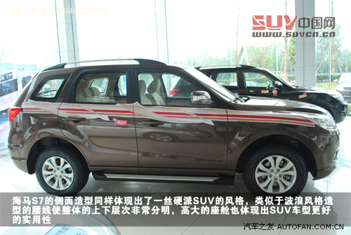 海馬S7全新設計的外觀似乎更加偏向野性風格,環抱式車身更顯陽剛線條,突出SUV車型的硬派美感。