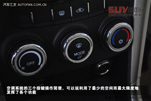 空調系統的三個按鍵操作簡便,可以說利用了最少的空間而最大限度地發揮了各個功能,但是初次使用可能上手不太容易,或許有人會為尋找“AC”鍵而擔憂。