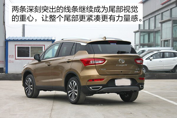 廣汽傳祺GS4的設計研發引入了大量國外設計師,在設計風格上很具有國際化的風范,緊湊干練的線條相比之前的GS5有了極打的蛻變,整車風格時尚大氣,細節的鍍鉻和電鍍鏡面輪轂造型非常出彩。