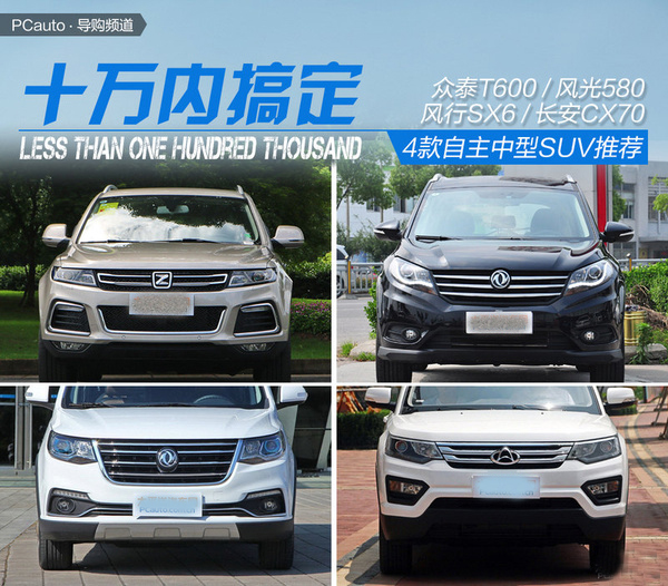 推薦的四款自主SUV都是最近上市或者剛改款的車型,他們分別是:眾泰T600、東風風光580、東風風行SX6、長安CX70。