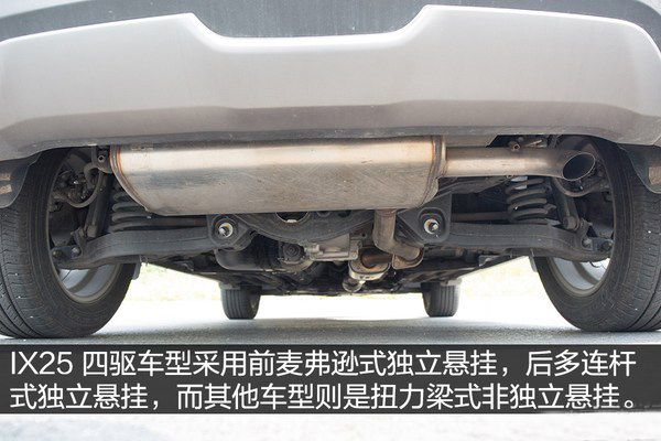 現(xiàn)代ix25的四驅(qū)車型后懸掛與兩驅(qū)車型有所區(qū)別,改為了成本更高且相對(duì)更為舒適的多連桿懸掛,以便更好的發(fā)揮四驅(qū)功能。