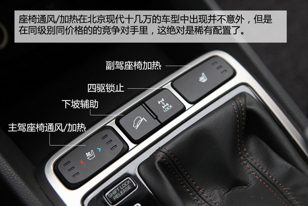 現(xiàn)代IX25四驅(qū)版本的車型配置十分不錯(cuò),也繼承現(xiàn)代汽車配置高的一大亮點(diǎn),像座椅通風(fēng)/加熱,倒車可視、車身穩(wěn)定系統(tǒng)、無(wú)鑰匙啟動(dòng)進(jìn)入系統(tǒng)同級(jí)別領(lǐng)先的高科技配置都裝備到。