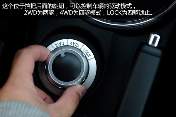 勁炫的四驅(qū)系統(tǒng)與絕大多數(shù)的城市SUV一樣,為電控多片離合器控制的適時(shí)四驅(qū)。通過(guò)電子控制四輪驅(qū)動(dòng)旋鈕可以手動(dòng)切換2WD(兩驅(qū))、4WD(四驅(qū))、4WD LOCK(四驅(qū)鎖定)模式,并配備了電子限滑系統(tǒng),當(dāng)車輪出現(xiàn)空轉(zhuǎn)時(shí),對(duì)打滑車輪單獨(dú)實(shí)施制動(dòng),進(jìn)一步提升越野時(shí)的脫困能力。
