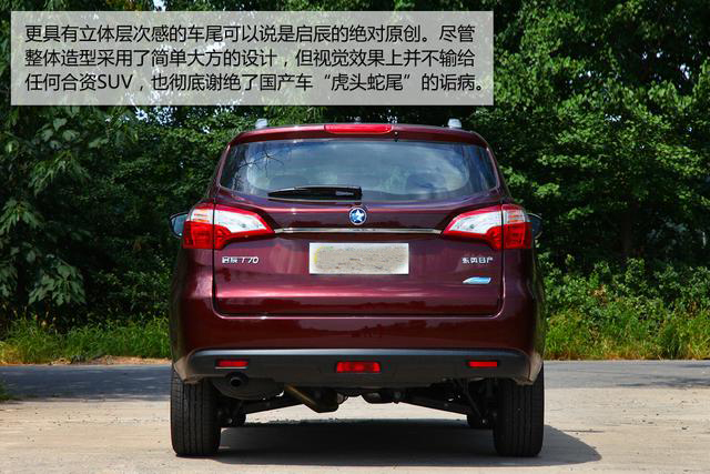 車身側面的整體造型屬于硬朗且陽剛風格的設計,其中前輪翼子板右上角的個性化轉向燈、高亮鍍鉻車門把手和車頂行李架等都是能吸引國內消費者的細節設計。同時新車的長寬高分別為4542mm/1786mm/1642mm,軸距為2630mm,內部的駕乘空間比較寬裕。車尾的造型感覺要比前臉更吸引人,這也展現出了啟辰原創設計的實力和優勢。盡管車尾的造型使用了簡單的設計元素,但層次感和科技感并不會輸于任何一輛同級別中合資SUV的車型,LED的高位剎車燈是全系的標配,尾燈組內部的光源依舊是鹵素,但燈具表面類似光帶的設計提升了質感。