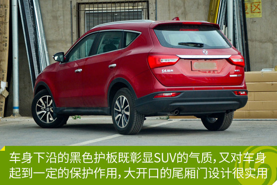 前后輪拱上方的線條和向下傾斜的車頂,配合上揚的腰線,都凸顯了風光580的運動氣息,最后面的小三角窗可以為第三排乘客帶來更多的光線。車尾上窄下寬,搭配全黑保險杠,同樣增加了運動感。融入“C”字形的兩尾燈使用鍍鉻飾條相連,飾條上刻有“風光”的漢語拼音字樣。