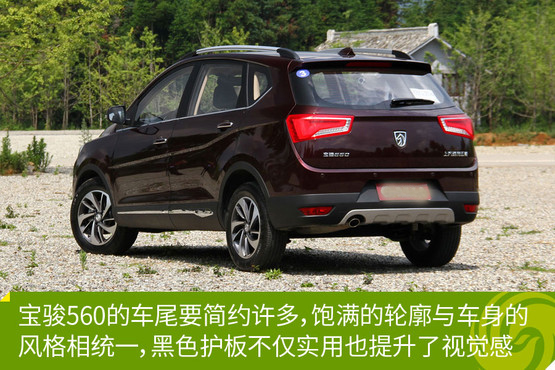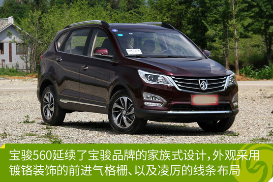 寶駿560作為上汽通用五菱旗下寶駿首款緊湊型SUV,其外觀延續寶駿家族式設計理念,寬大的盾形中網配合飛翼式前大燈,以及內部三橫幅的鍍鉻處理給人感覺十分大氣。尾部方面,寶駿560的車尾設計整體給人感覺較為規整,橫向的尾燈組與尾門腰線平齊,尾燈組內部也融入了LED光源。